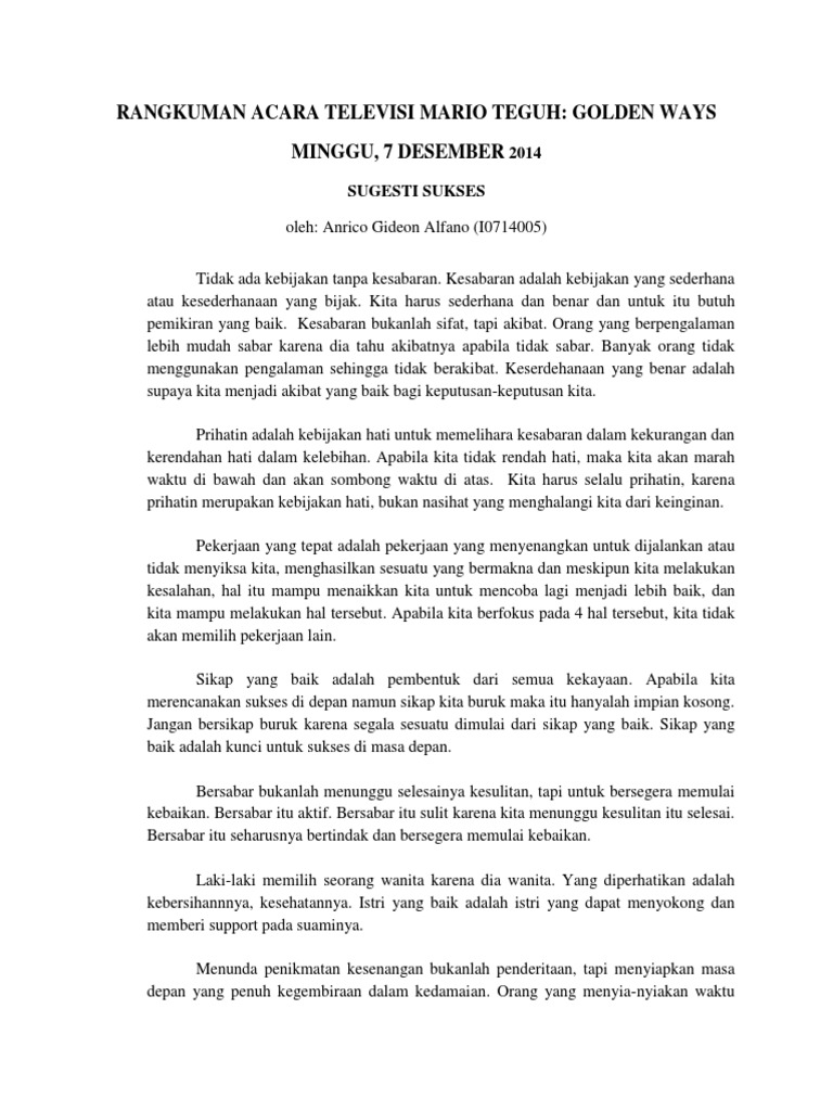 Kata mutiara dari mario teguh golden ways. Bahkan, ada acara televisi yaitu mario teguh golden ways yang bisa ditonton oleh seluruh. Mario teguh golden ways berisi kata motivasi yang menggungah hati juga mwnambah wawasan by ragnestiaraone in types > creative writing and berisi berhentilah berfokus pada penderitaan, segera lakukan sesuatu untuk kelur dari penderitaan. Dalam kalimat ini, bapak mario ingin mengatakan bahwa mereka yang ikhlas dan berani tidak takut untuk mengalami.