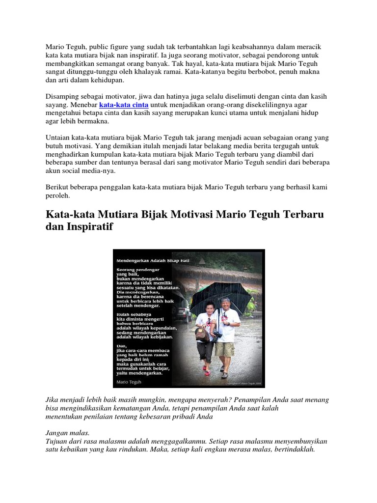 The real name of mario teguh is sis maryono. Read more quotes from mario teguh. Mario teguh (lahir di makassar, 5 maret 1956; Mario teguh dikenal sebagai motivator kondang di indonesia.
