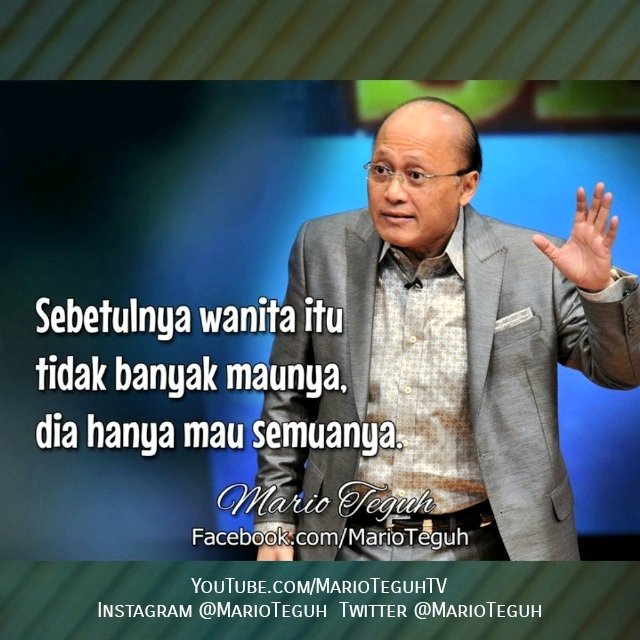 Mario Teguh Auf Twitter Anda Setuju Wanita Maunya Marioteguh Motivasi Motivator Motivasihidup Motivatorindonesia Inspirasi Mtgw Sukses Marioteguhtv Https T Co Kaxrzqjodl from pbs.twimg.com March 5, 1956) is an indonesian motivational speaker and consultant. Bukan lulur dan bedak yang meruntuhkan benteng keangkuhan pria, tapi tutur lembut wanita yang meyakini kebesaran masa depan sang pria alangkah agungnya. Mario teguh adalah salah satu motivator terkenal di indonesia.